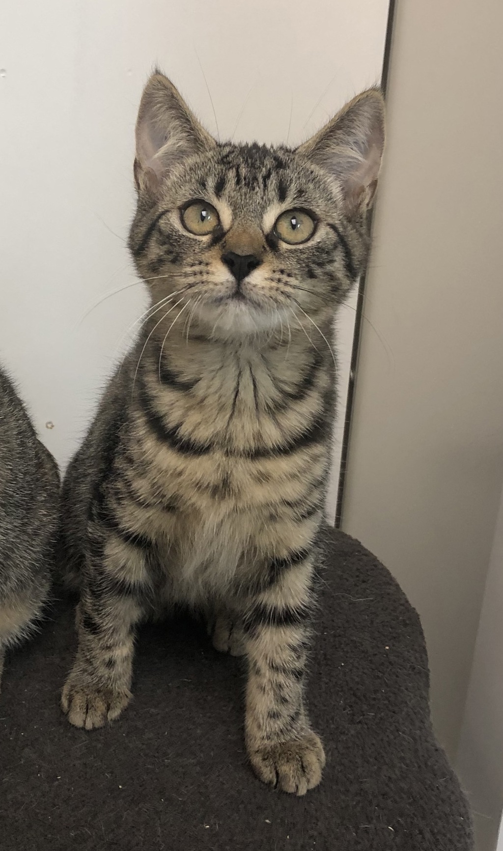 Hi there, my name is Mildred and I'm a sweet little tabby kitten in search of my forever home. I may be a bit on the shy side, but once I warm up to you, I am the most loving and affectionate girl you'll ever meet.