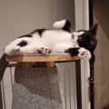 Paulie has been fostered with dogs and is comfortable with cat-friendly canines, headbutting them to greet them, and sleeping in the dog beds. The gentleman he is, he respects the boundaries of older cats, and would also do well with respectful children.