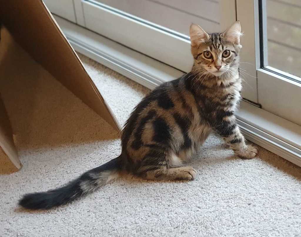 She has a great purr and melts into your neck for cuddles once she is comfortable and settled, she is also food orientated, which makes making friends quite easy! Wasabi would suit experienced cat owners who have the time to help her continue to build her confidence and would love to have another confident feline in her new home.