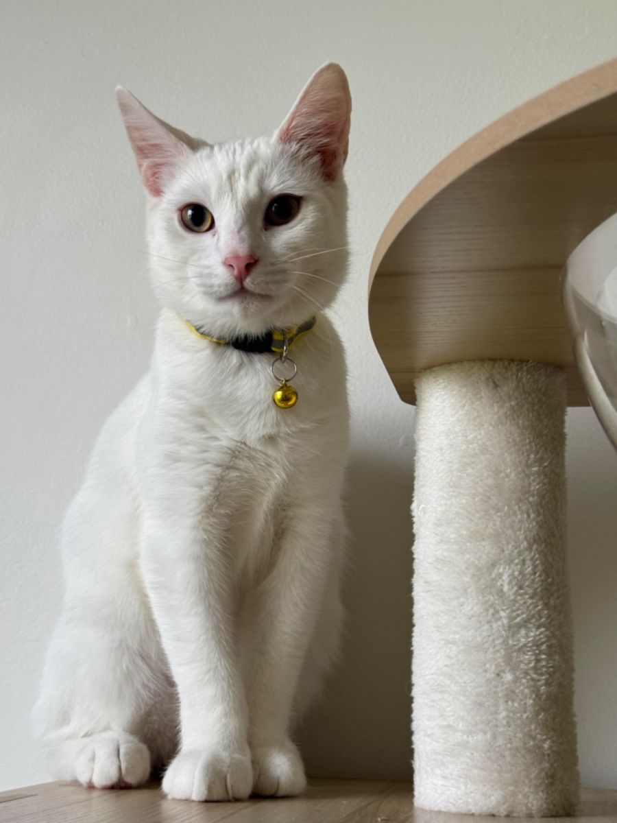 Meet Tamlin, a beautiful, 7 month-old, pure white cat with the most stunning eyes that will melt your heart. He arrived into our care with his four siblings, and although he needed some time to recover, he's transitioned into a well-rounded, sweet-natured, and intriguing youngster.