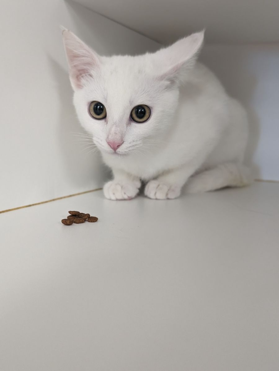 As an all-white cat, Sylveon's delicate complexion requires her to be an indoor-only kitty. This not only ensures her safety but also protects her from the potential dangers of the outdoors. With plenty of toys and enrichment activities, Sylveon will find endless entertainment within the comforts of her loving home.