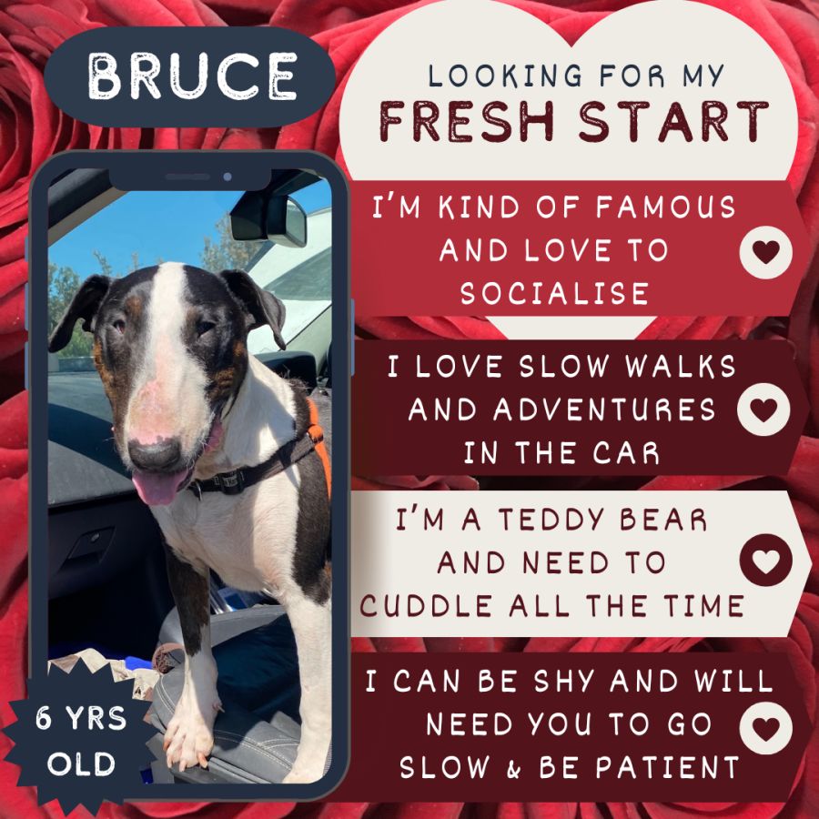 There are a number of non-negotiable’s when it comes to rehoming Bruce and whilst we understand that many people have a beautiful, friendly dog at home already…..we will not be considering any home where Bruce does not have all the love and snuggle time to himself.