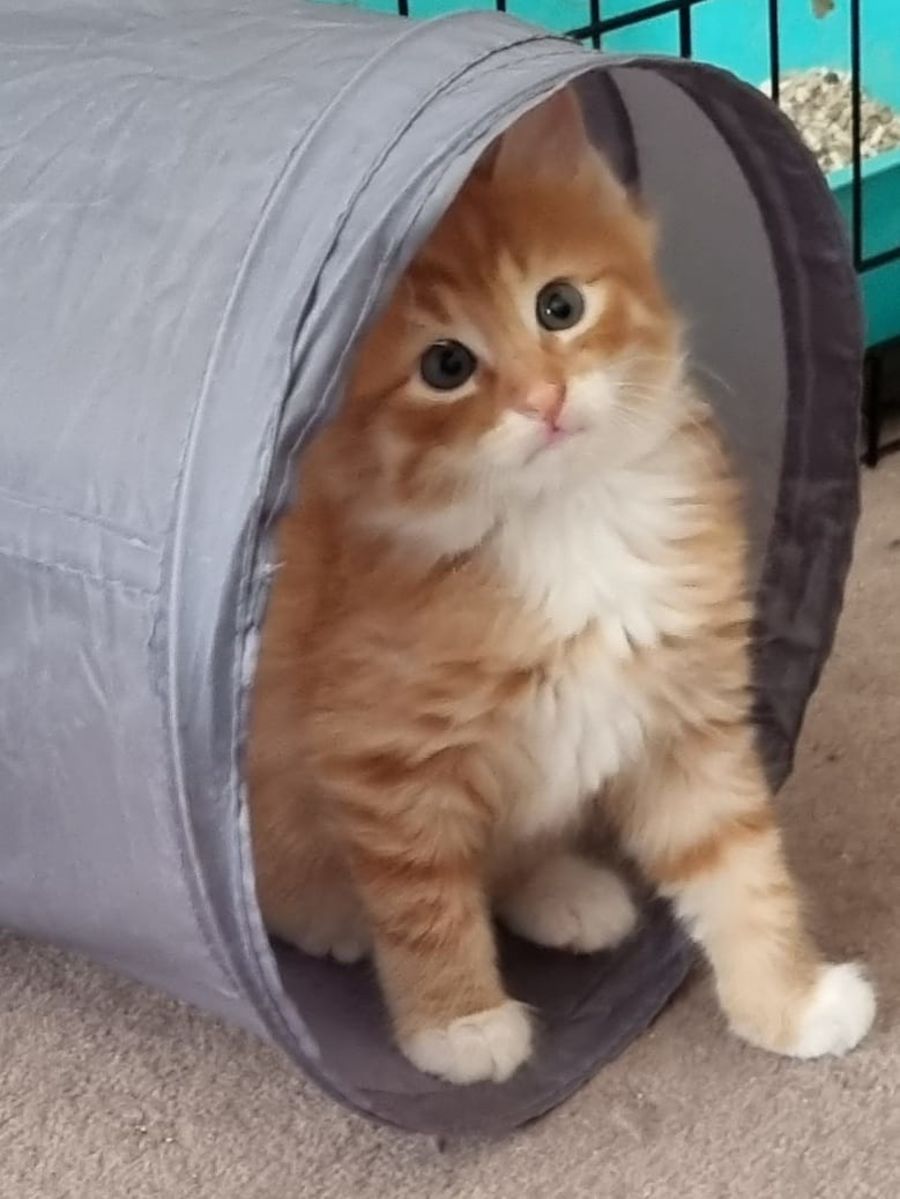 Meet Sunny, a beautiful cat with a playful heart and endless charm. Not only does he have the prettiest ginger coat of fur, but his adorable white paws are sure to leave you smitten. Being the only male amongst his three sisters and doting mother, he's grown to be a considerate, friendly, and absolutely lovable kitty.