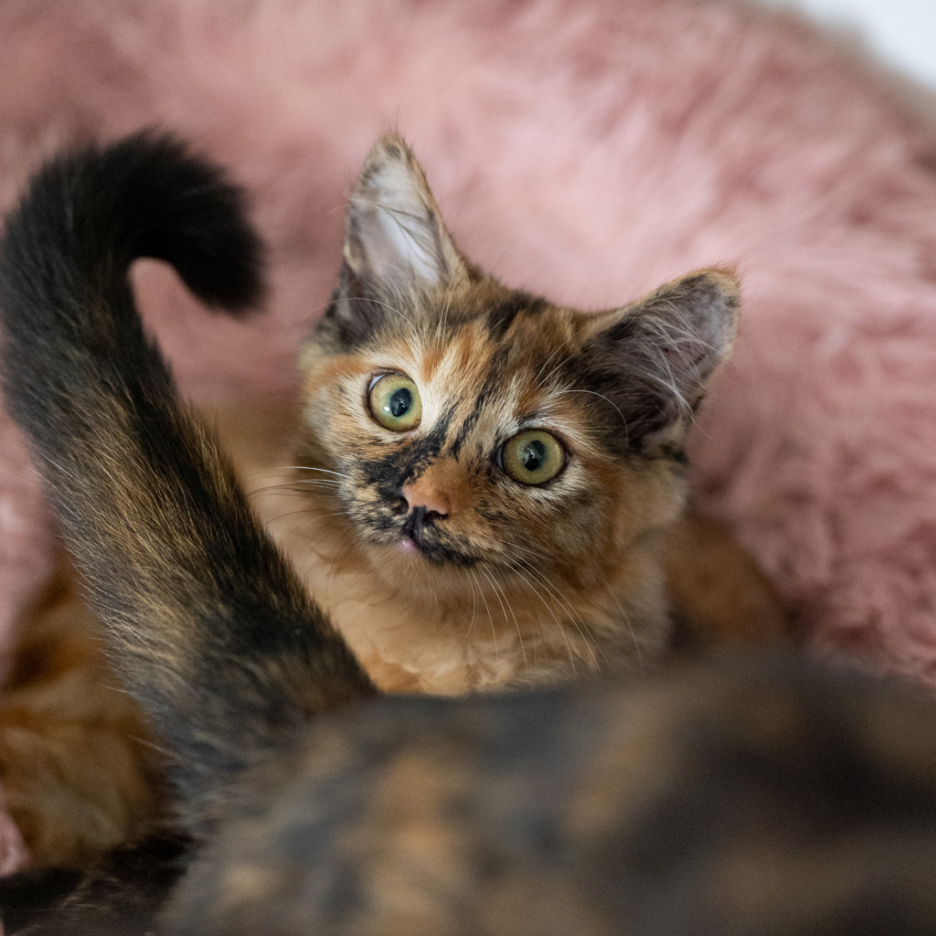 Hey there, I'm Mishka. I'm a friendly and affectionate kitten who would suit most homes! My playful paws are always ready to pounce on anything that moves. I love playing with wand toys and mysterious shadows on the wall! When I'm finished playing, I love nothing more than finding a warm lap to curl up in.