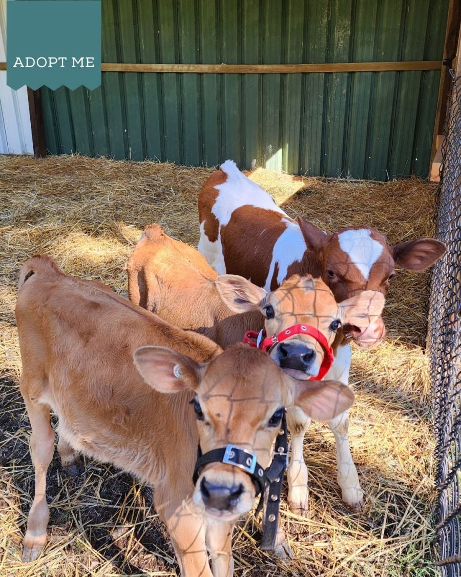 These three adorable calves are looking for their forever home! Meet Joe, Patch, and Steve who were surrendered from a dairy farm but found love and care in one of our foster homes.