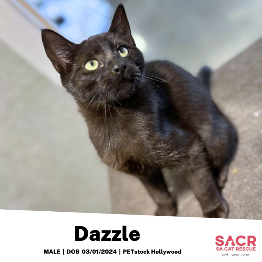 Meet Dazzle, or Daz for short - a vibrant little feline with a twinkle in his eyes. Dazzle's lively and playful personality is contagious, and he will keep you entertained with his non-stop energy throughout the day.