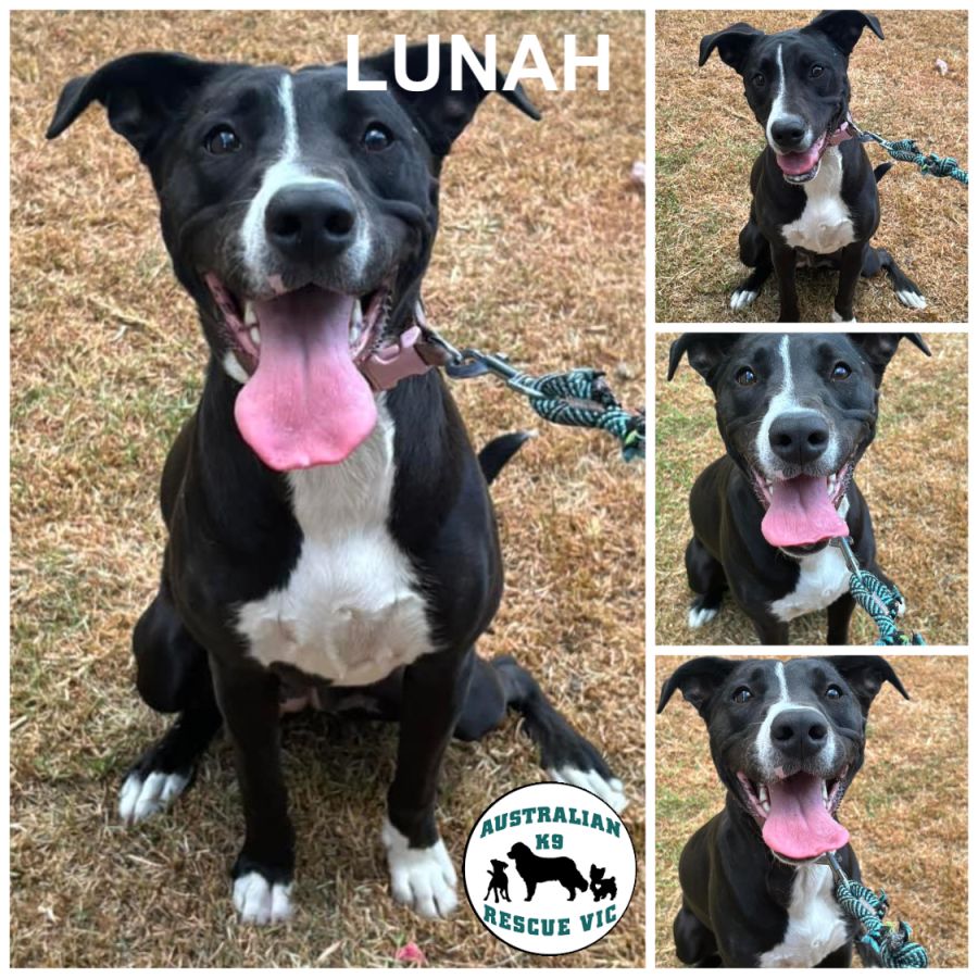 Lunah is approximately 11 months old Border Collie x Staffy with all the amazing staffy characteristics.