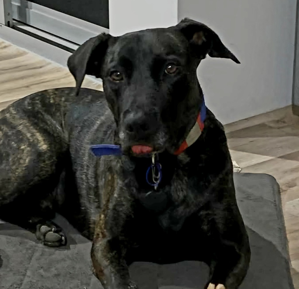 Beautiful Jack is deaf, however during his stay in foster care he has mastered various commands with his carer, who can advise his new owners in the techniques she uses to assist in his training. Chipped as a Staffordshire Bull Terrier, he is well and truly mixed breed, but not a large dog. He has a habit of often having his tongue sneaking out, which gives him a quirky and sweet look.