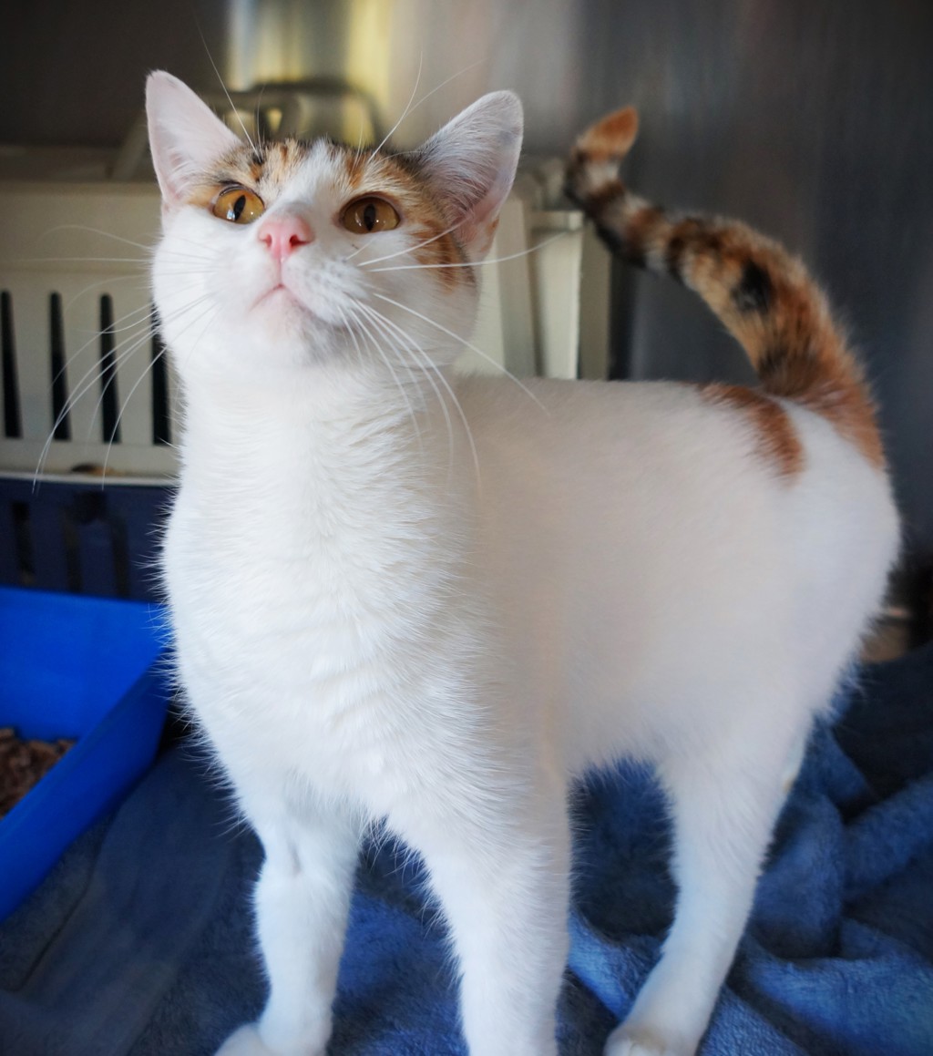 Meet Sirena, a stunning 10-month-old female cat in need of a loving new home. Sirena is a beautiful white and calico domestic short hair with a sweet and affectionate personality.