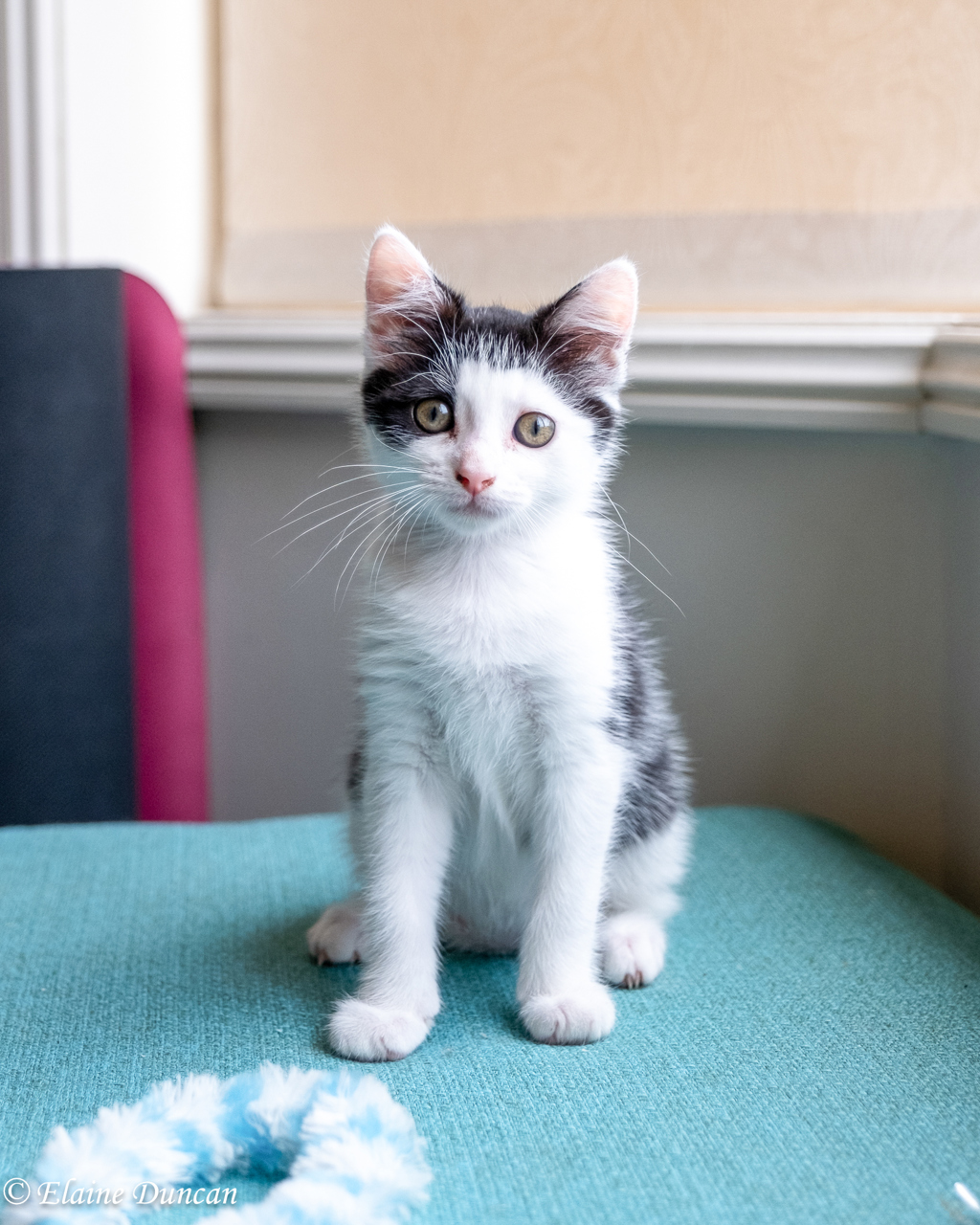 Erika really loves to play. She is always trying to instigate kitty wrestling matches with her siblings but also loves to play with toys or just do zoomies around the house. Erika can turn most things into a toy and has an adorable habit of dragging her favourites around with her, depositing them all around the house or even bringing them up the cat tree with her and into her bed.