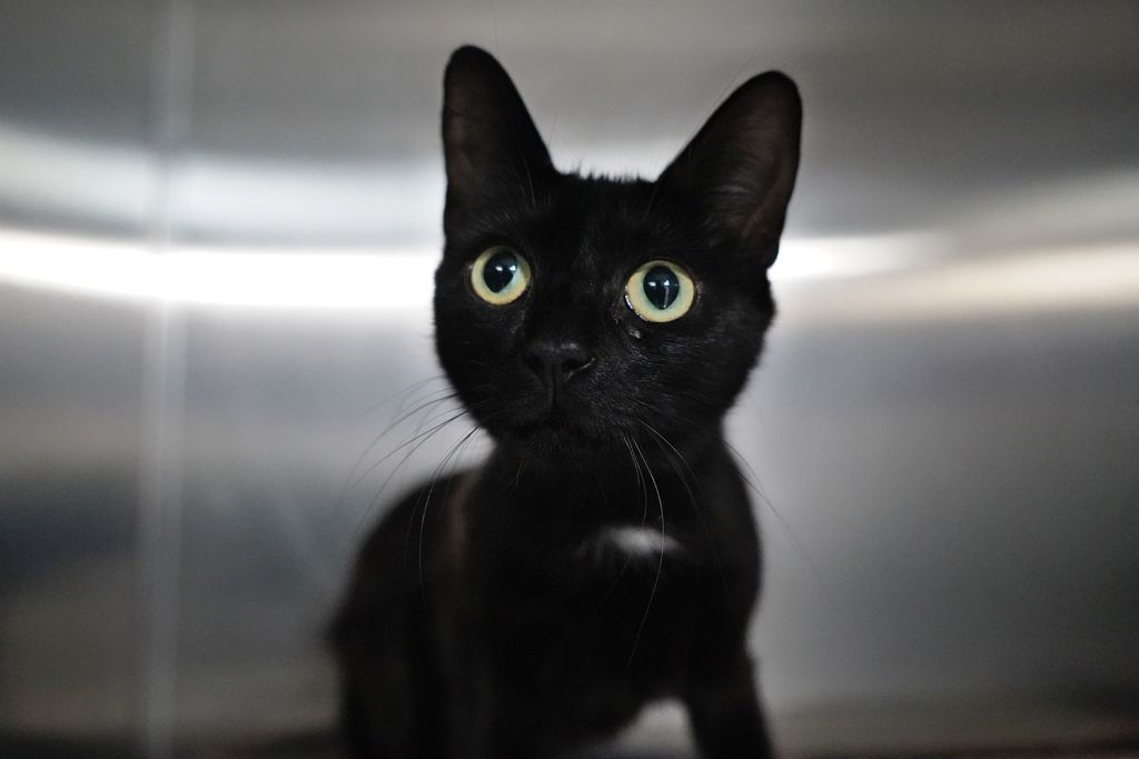 Olive, a sleek and charming young black female cat, is on the lookout for her forever home! This sweet feline possesses a unique balance of affection and independence. While she is undoubtedly a loving companion who enjoys the company of people, she values her personal space, making her the perfect match for those who appreciate a cat with a bit of individuality.