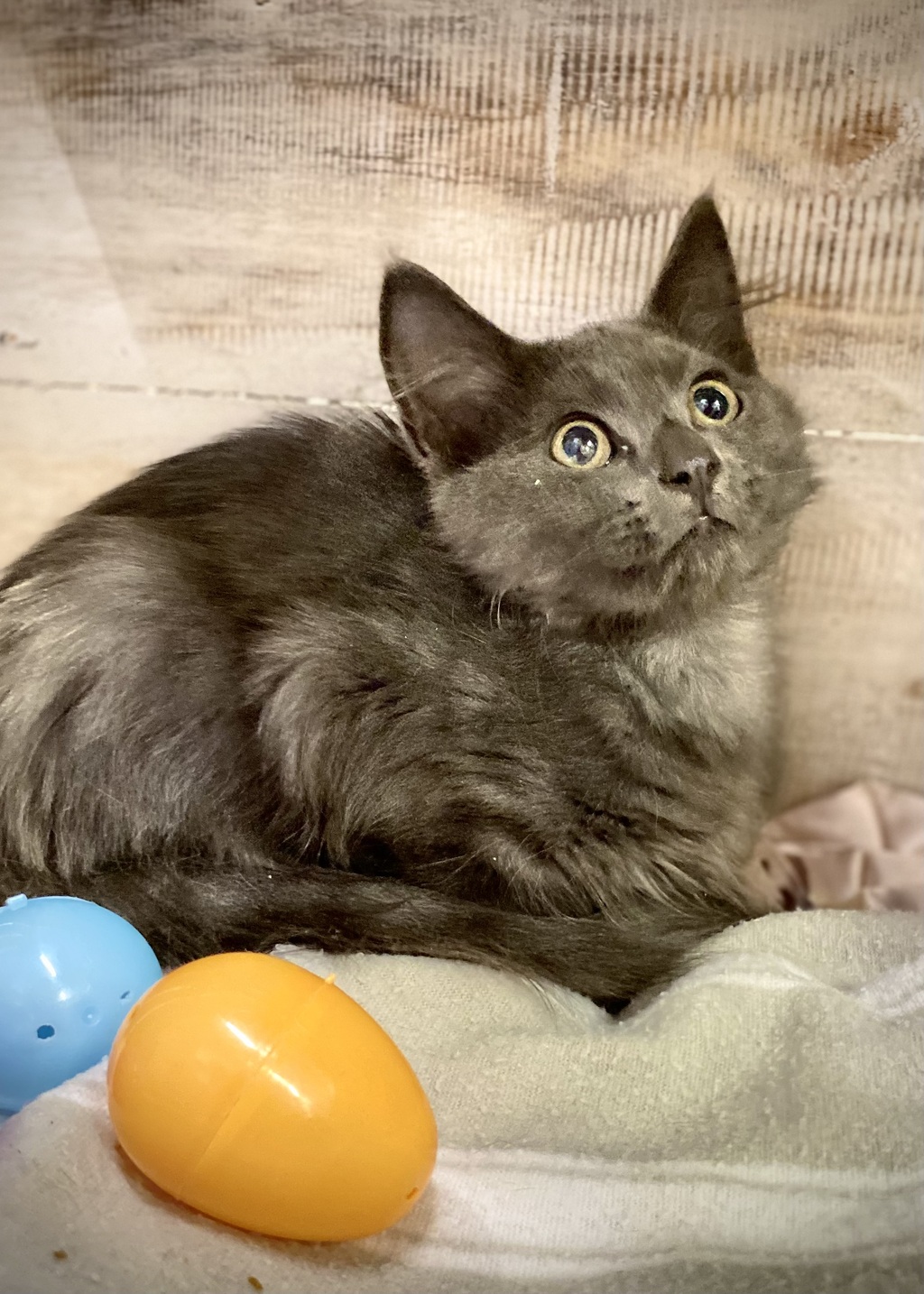 Are you a cat person? Are you gentle and patient by nature? Well great news - you will be the person for me! My name is Barton and I'm an affectionate little boy who is just scared of the world. I'm actually a bit of a scaredy-cat, so I need my new family to understand that it might take me a little time to adjust, settle in and start to relax. Once I'm feeling comfortable, I'll come looking for attention. So bear with me. A more mature family with a quiet, dog-free home would suit be perfectly. Other tips for my growth are: