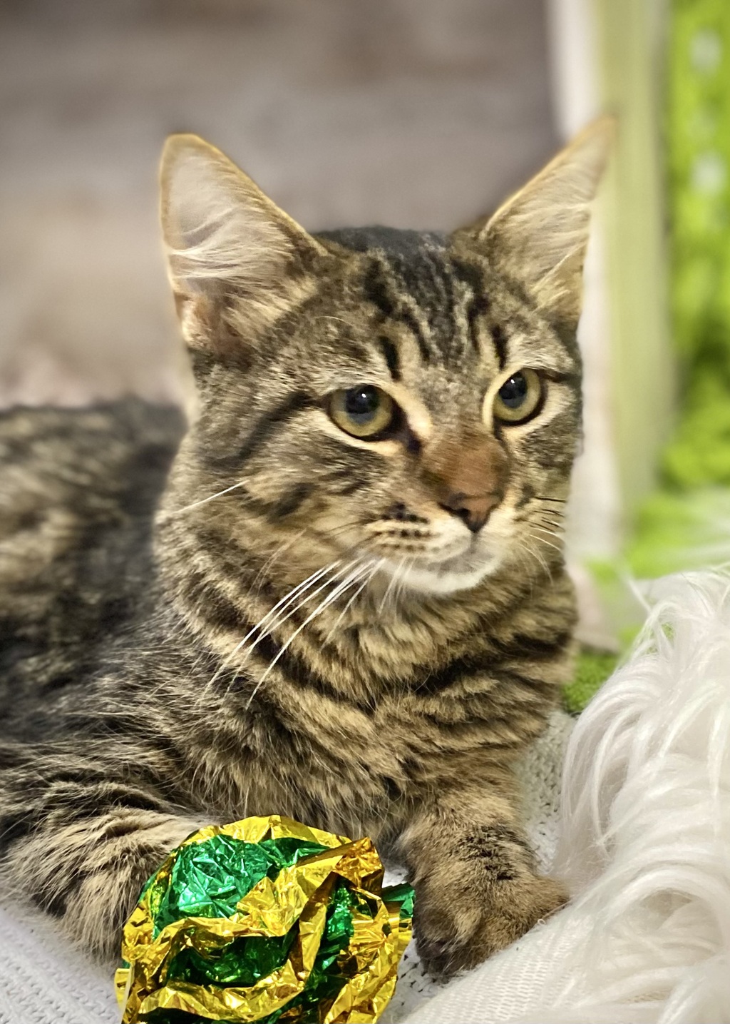 Hello I'm Brad. I'm a very sweet, gentle fellow with the most beautiful, soft coat of brown stripes and lovely yellow eyes. I'm a little bit shy, however with lots of love and cuddles plus some yummy bits of roast chicken, I'll settle in as your furr-ever companion in no time. I recommend the following tips to keep me happy and healthy in your home:-