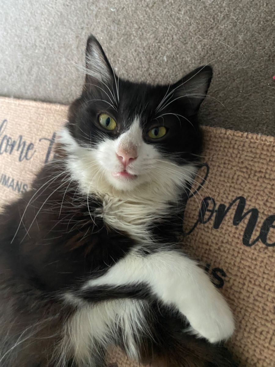 January would be happy to go to a home with another cat, or to he the only cat in the home. As long as she gets lots of cuddles!