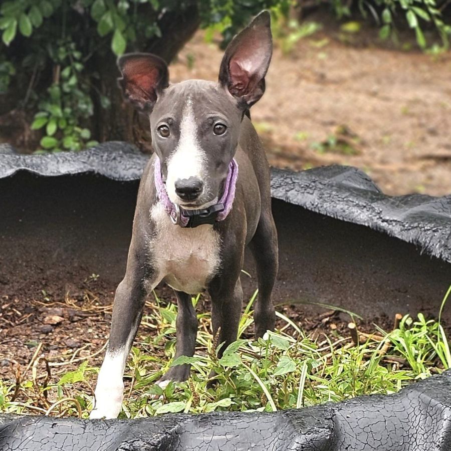 Martika is a sweetheart, she is playful, gentle and loves a good cuddle. Her coat is extremely short, she almost feels naked lol but it's there, a beautiful blue grey coat. Martika will require training to build confidence, learn her place in the big wide world also what is expected of her, but we feel she'll do great with training and life in general. She is an all-round sweet pup looking for her very own home.