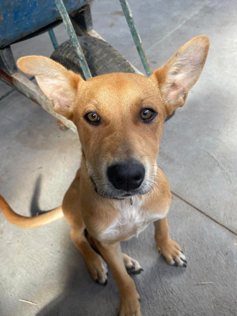 Rowlf appears comfortable with other dogs but has only been socialised with one other dog aside from his little mates. He is a happy puppy eager to please and loves humans. Rowlf hasn’t been tested with kids or cats.