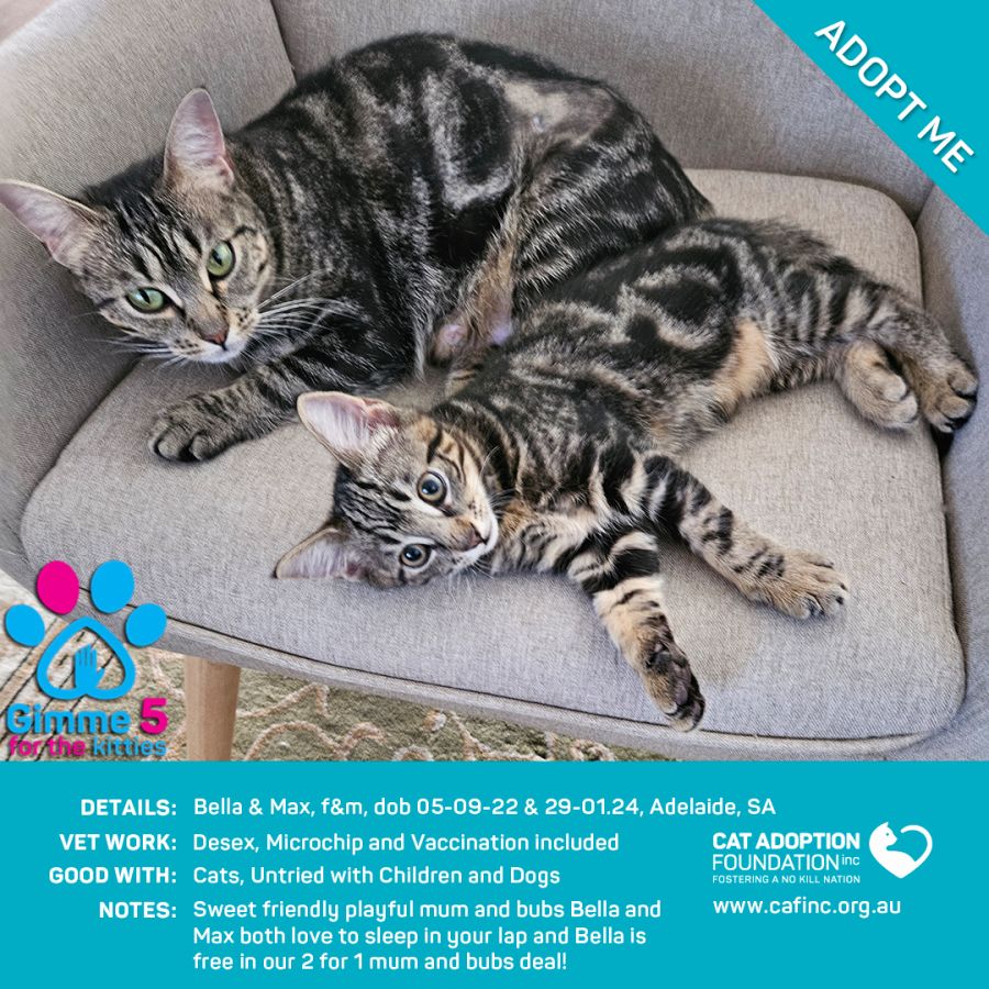 Donate to Bella & Max 2 for 1 Mum & Bubs Deal! at Cat Adoption Foundation Incorporated via Shout