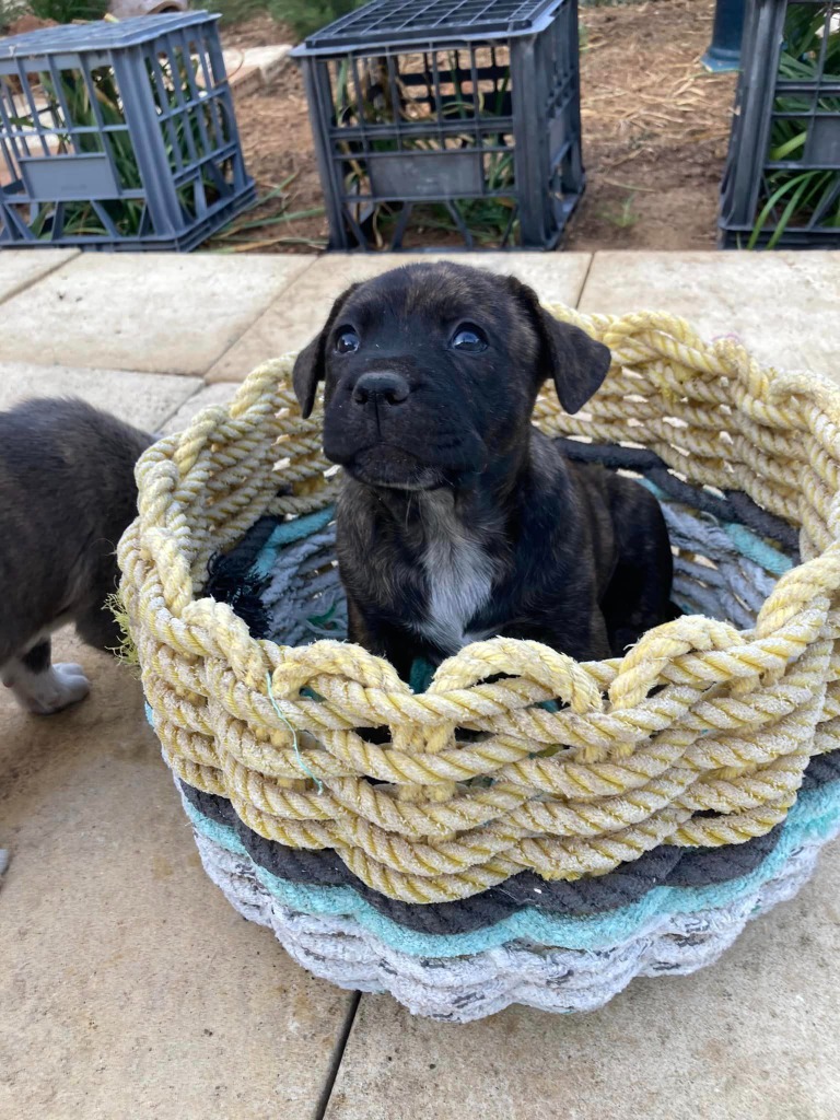 I'm a future larger Amstaff mix, bursting with love and affection. But remember, adopting a puppy means making a lifelong commitment filled with love, training, and socialisation so please chat to the whole family before making a commitment to meet me.