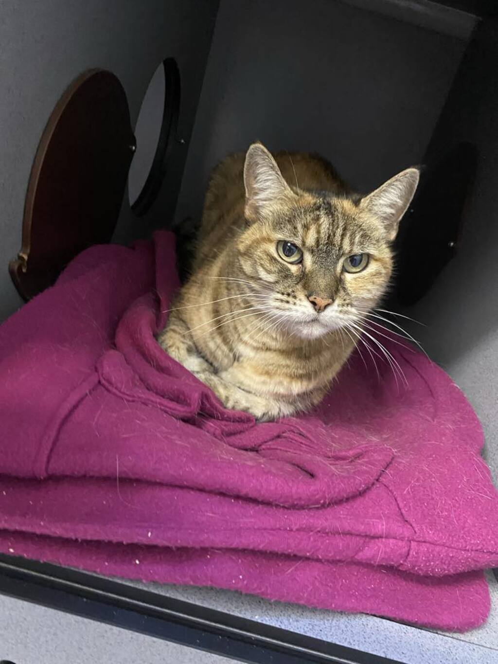Milly is a sweet and affectionate senior feline in search of a loving forever home where she can spend her golden years. Despite her age, Milly is full of love to give and enjoys cozy naps and gentle pets. If you're looking for a calm and loving companion to share your home with, Milly would be the perfect fit for you.