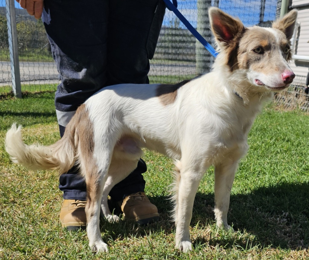 Split is a young male about 1 year old. We think he is an Australian Sheltie X Kelpie.