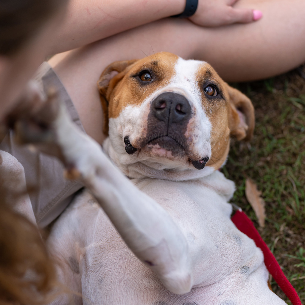 When it's time to relax, Karen loves nothing more than rolling around in the grass and soaking up the sun. She's a big fan of belly rubs and isn't afraid to show her affectionate side.