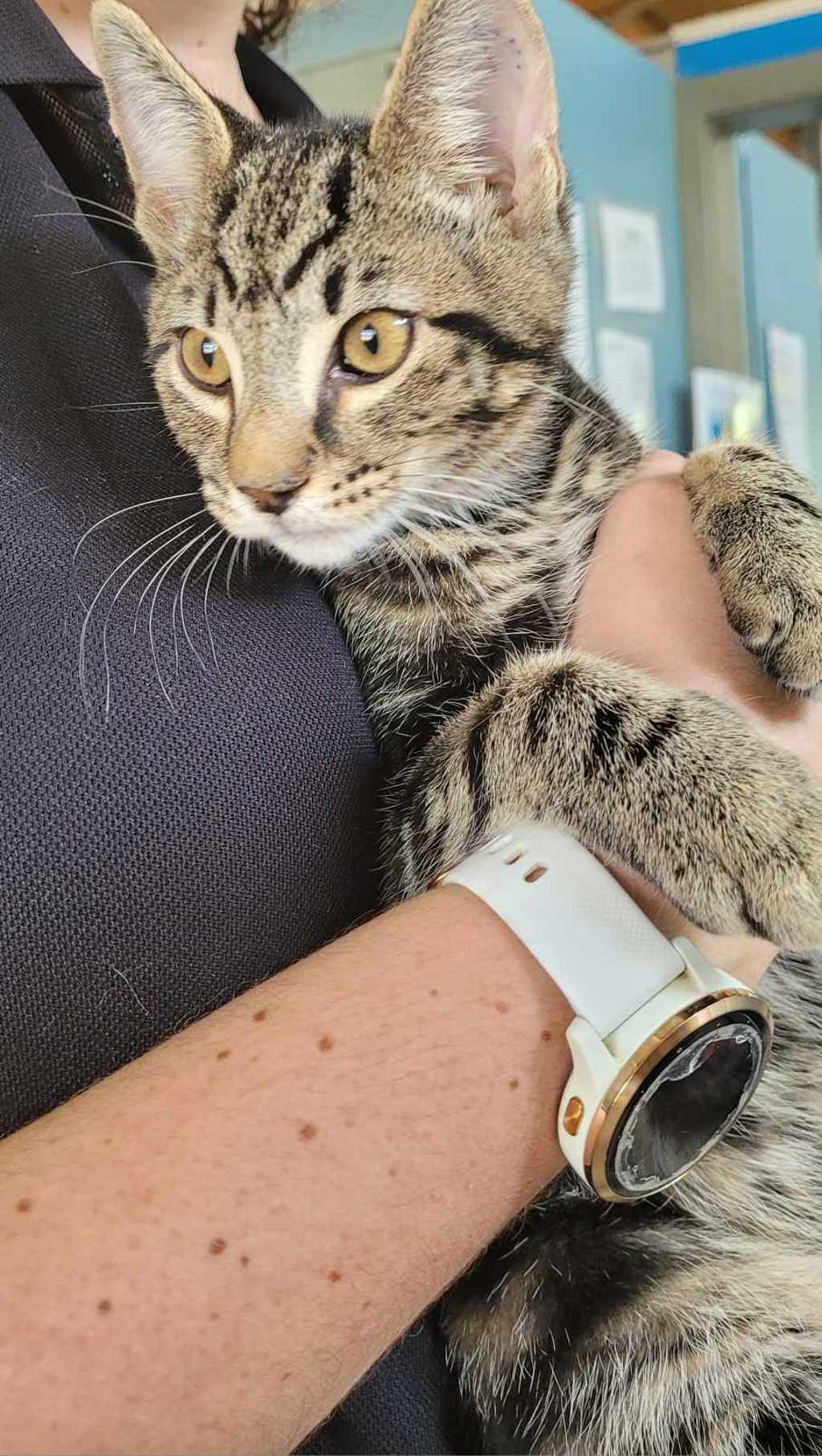 I have perfected the art of the irresistible purr. It's like my secret weapon for getting all the cuddles and chin scratches I could ever want. Life's just one big, exciting string of moments, and I'm here to make every second count - whether I'm chasing my tail or sharing some purr-fectly quiet time with my favourite humans. So, if you're up for a bundle of furry fun and a lifetime of companionship, please consider adopting me!