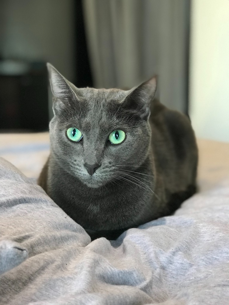 I'm Frankie, the charismatic feline with a flair for independence and intelligence! With a sleek coat of dark grey fur and deep green eyes that sparkle with curiosity, I'm ready to charm my way into your heart. Here’s a glimpse into my purrsonality: