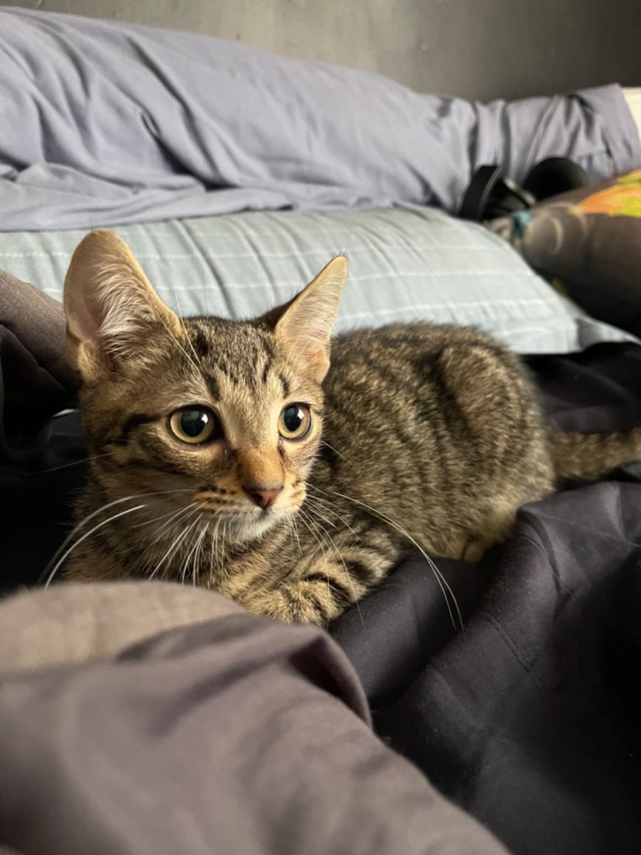 He is a sweet boy who likes dogs and loves other cats. He would love a home with another cat (or his brother Boyd) so that he can have someone to chase around. He’s good with children