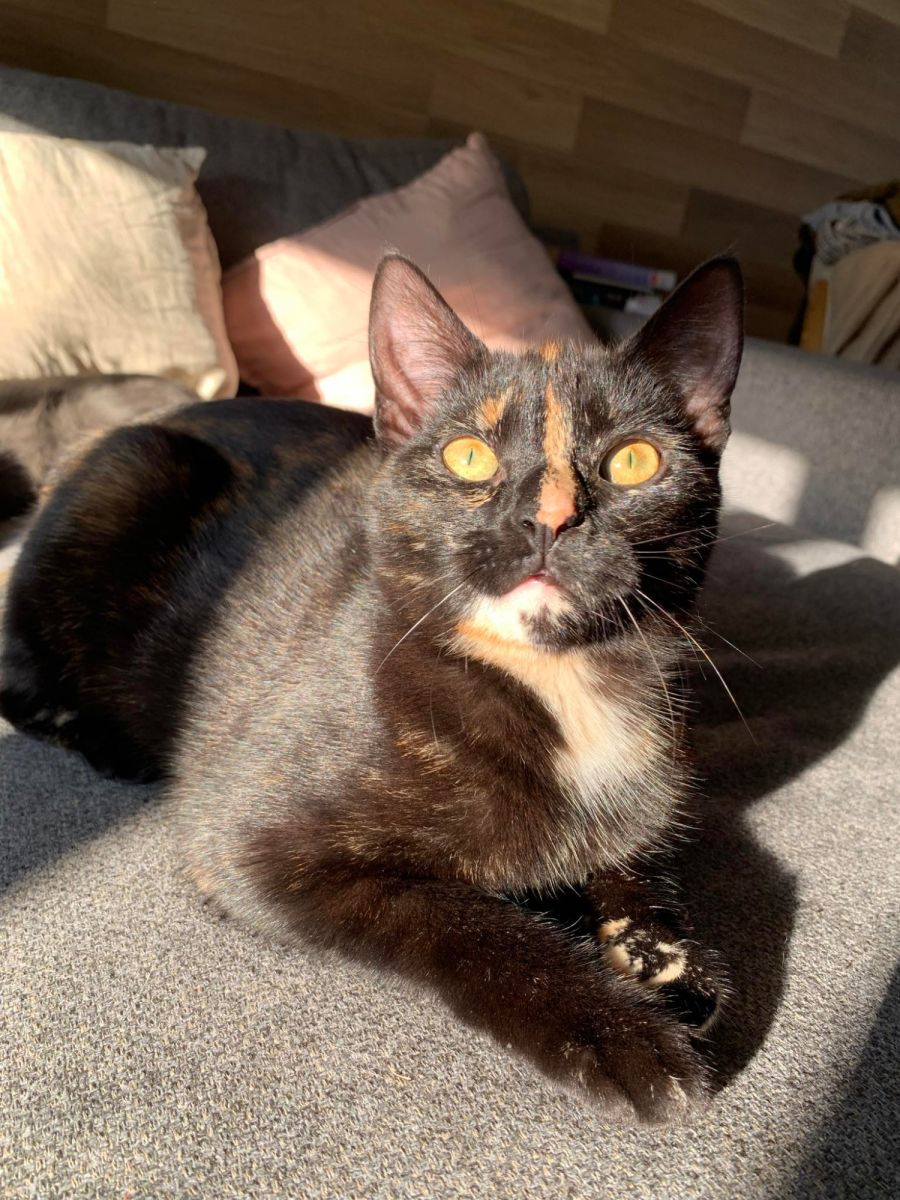 Bugsy exudes a bright curiosity that prompts her to explore her surroundings. Her playfulness shines in her enjoyment of a good chase after her toys, providing endless entertainment and purrs. Every day is a new adventure when you have Bugsy around - be it a game of fetch, or her bravely exploring a new perch.