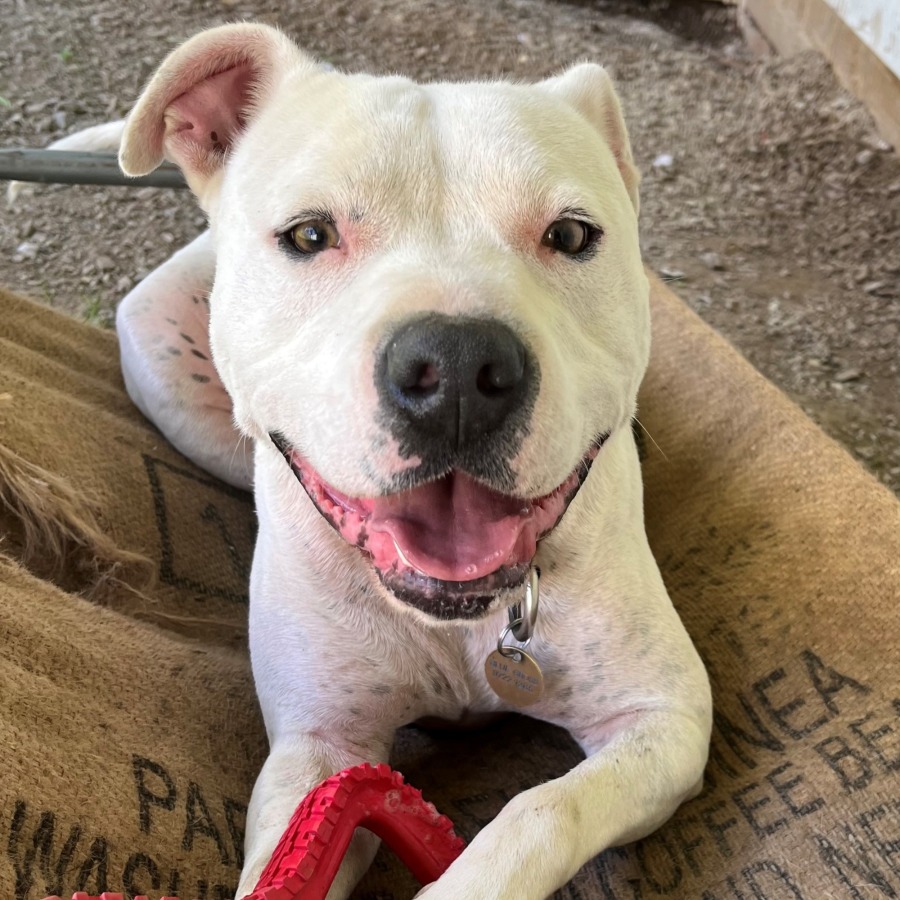 Chase was born deaf! He has been doing really well learning some sign-language while at the shelter, and would appreciate if his new owners continued his training so that they can understand each other.