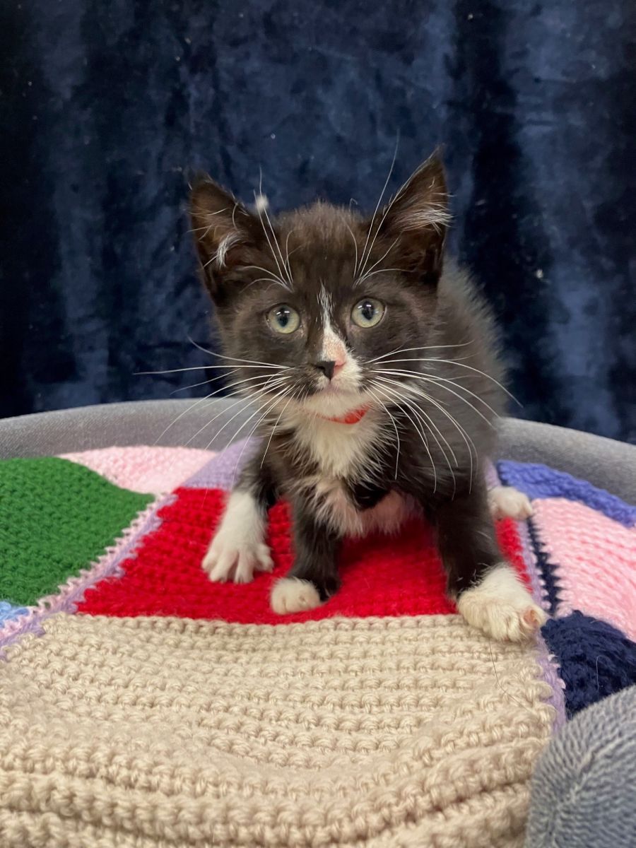 Meet Bambi, an adorable 3-month old, black and white kitten who has eyes that speak volumes. This little one has a charmingly chirpy disposition, making her an excellent fit for almost any household.