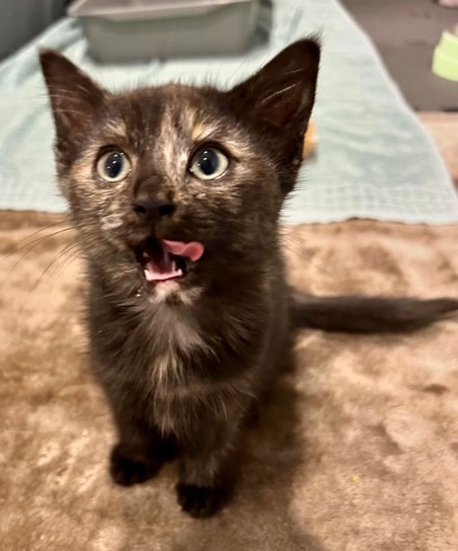 Meet Eeyore, a beautiful tortie with a heart as lovely as her fur. Eeyore is a petite princess with perfect fur that shimmers in the sunlight. Her eyes, a mix of emerald and sapphire, mirror the depth of her soul and her enchanting personality.