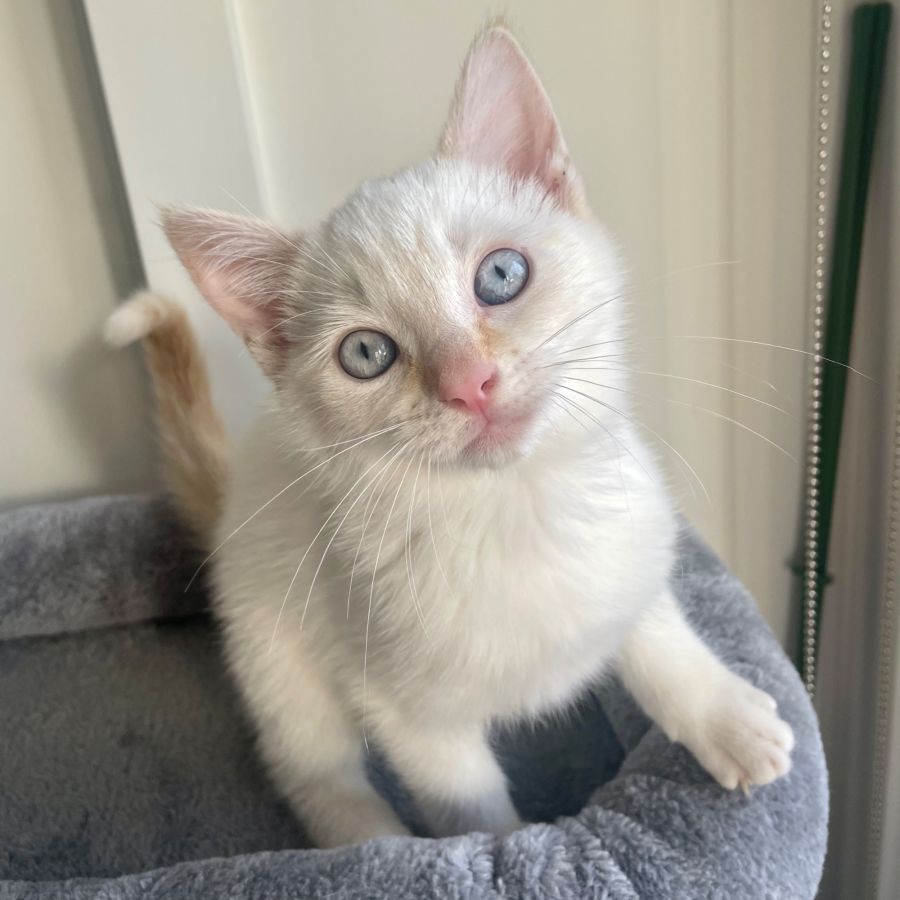 Meet Rabbit! Rabbit mesmerizes everyone he meets with his sleek white fur adorned with ginger tips on his ears and tail. His beautiful bright blue eyes are windows to his gentle and loving soul.