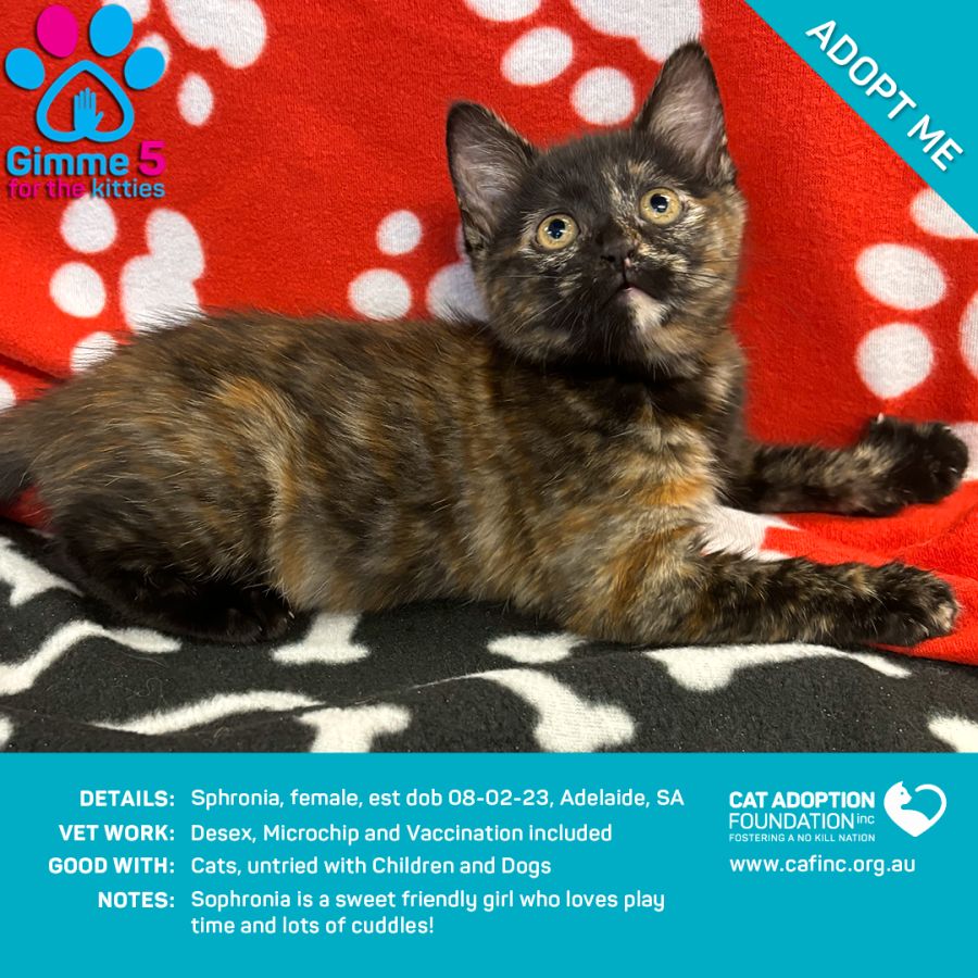 To adopt this kitty please contact Sayla on 0422 652 837 or email us at info@cafinc.org.au.