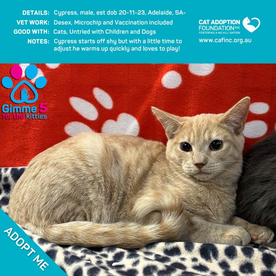 To adopt this kitty please contact Sayla on 0422 652 837 or email us at info@cafinc.org.au.