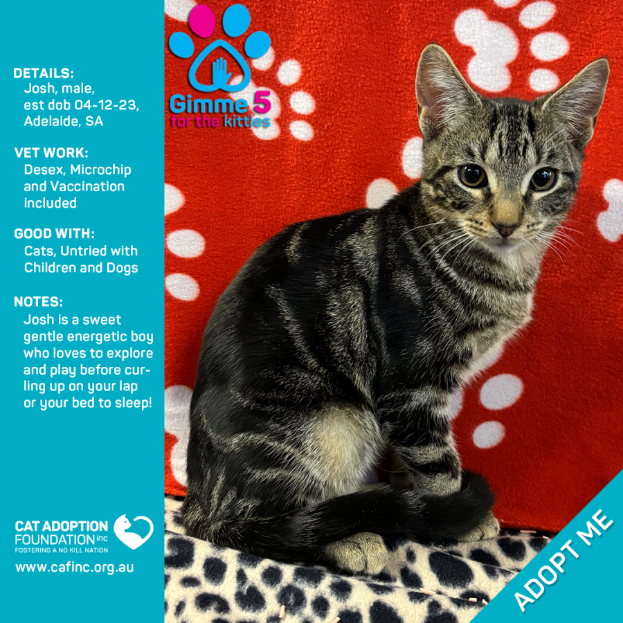 Donate to Josh Just $50 Limited Time! at Cat Adoption Foundation Incorporated via Shout