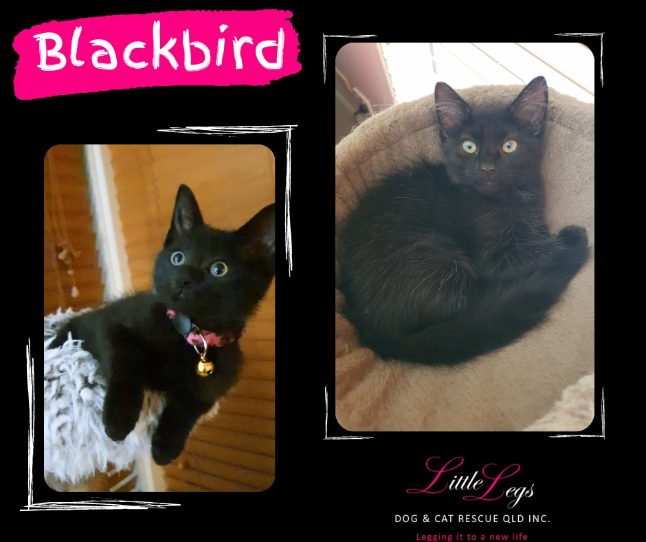 Blackbird was born at a vet nurse's home after her mother given to a vet. Blackbird was well fed and absolutely cared for by her mumma Bellanca. Blackbird is a cuddly snuggly purring little house panther. She is the fluffiest of her litter with gorgeous fluffy hair. She loves to be held and to be in the arms of her humans. She quite happily sits on your lap or near you on the couch so that she can receive pats. She guards her food like a panther, even growls like one while she's eating LOL.