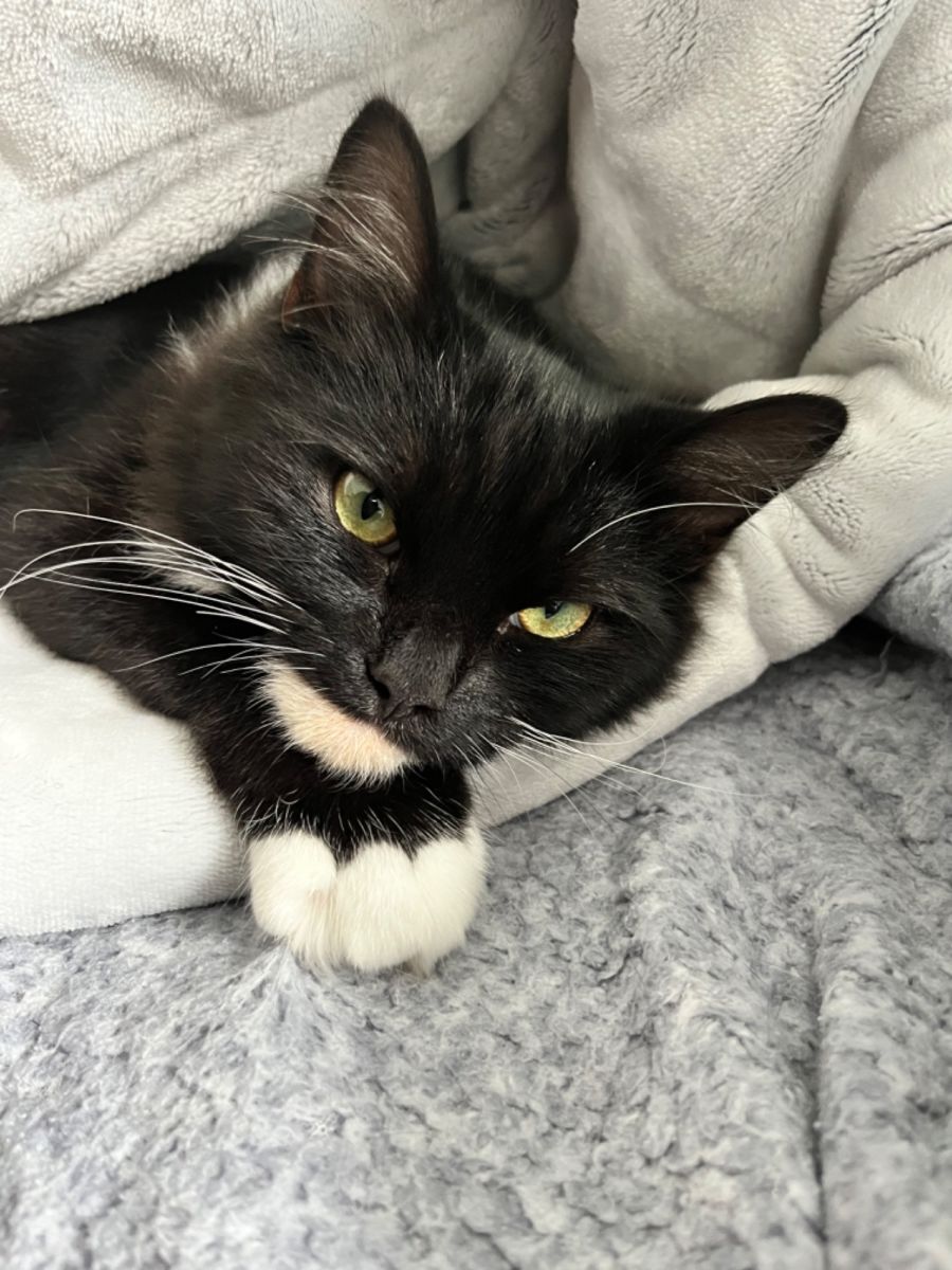 3 weeks ago he was living rough on the street. Not having human contact for the first 5 months of his life has made Birdie fearful of humans, but he’s learning to trust, he still has a way to go but with love and patience he will be a loving happy cat.