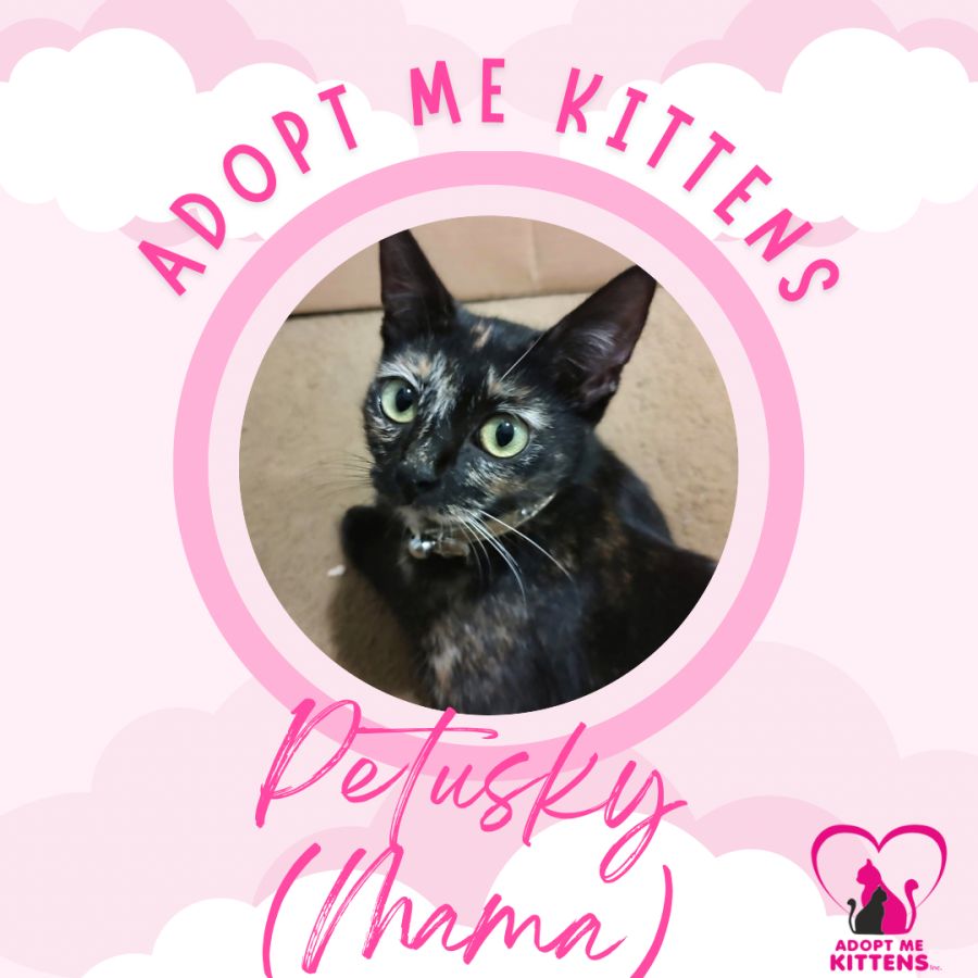 Mama loves being around people and is very chatty. If you speak 'meow' you can have very lengthy conversations. She loves curling up on a warm bed.