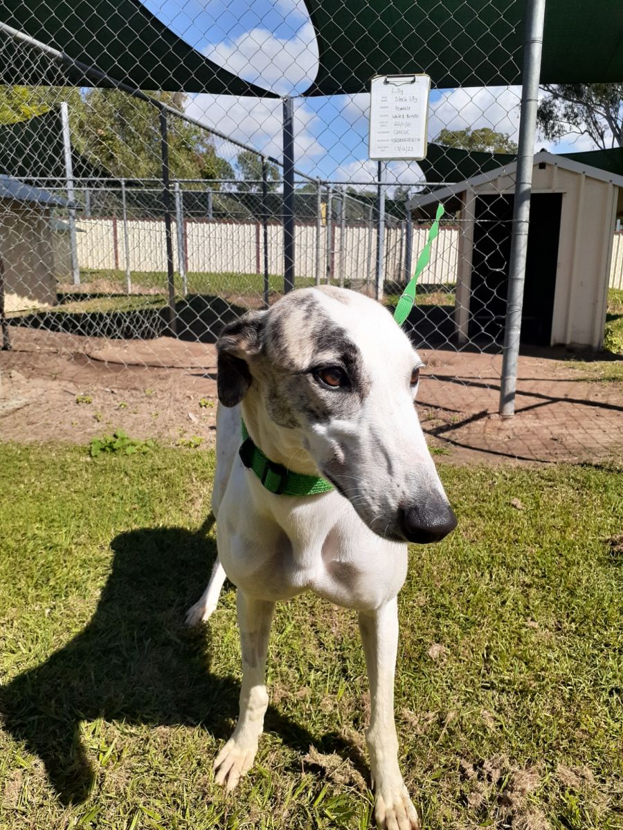 Lilly is suited to living with another greyhound/large breed dog.