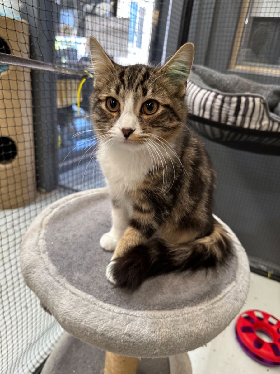 A local pound when he was never claimed. He has been with other cats and is very social!