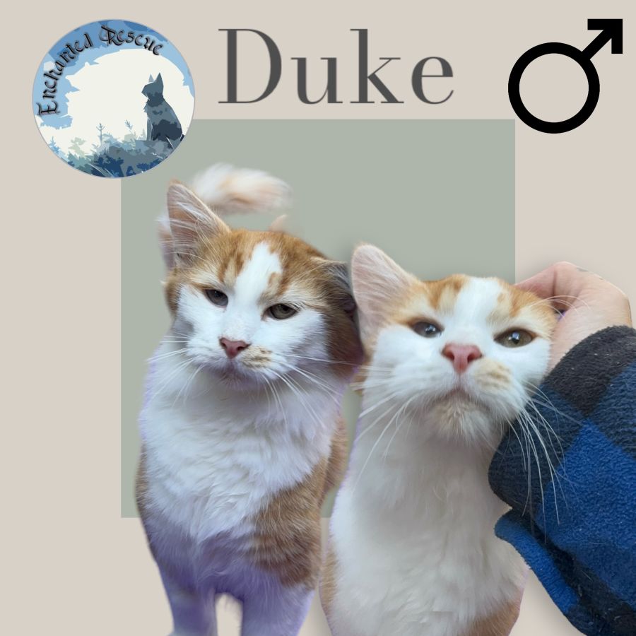 A purring symphony of love, Duke is a heartthrob set to woo your heart with his breathtaking looks. He's a friendly feline who charms everyone with his heartwarming company and affectionate nature.