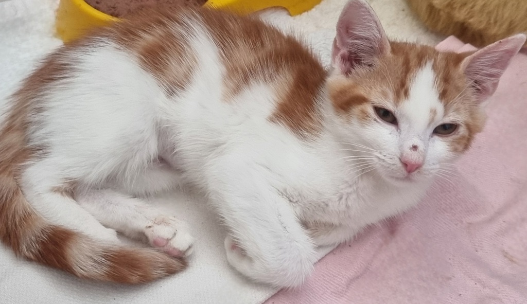 Her Name is Mango and she is a domestic short hair of 7 months old and just so cute with her ginger and white coat.