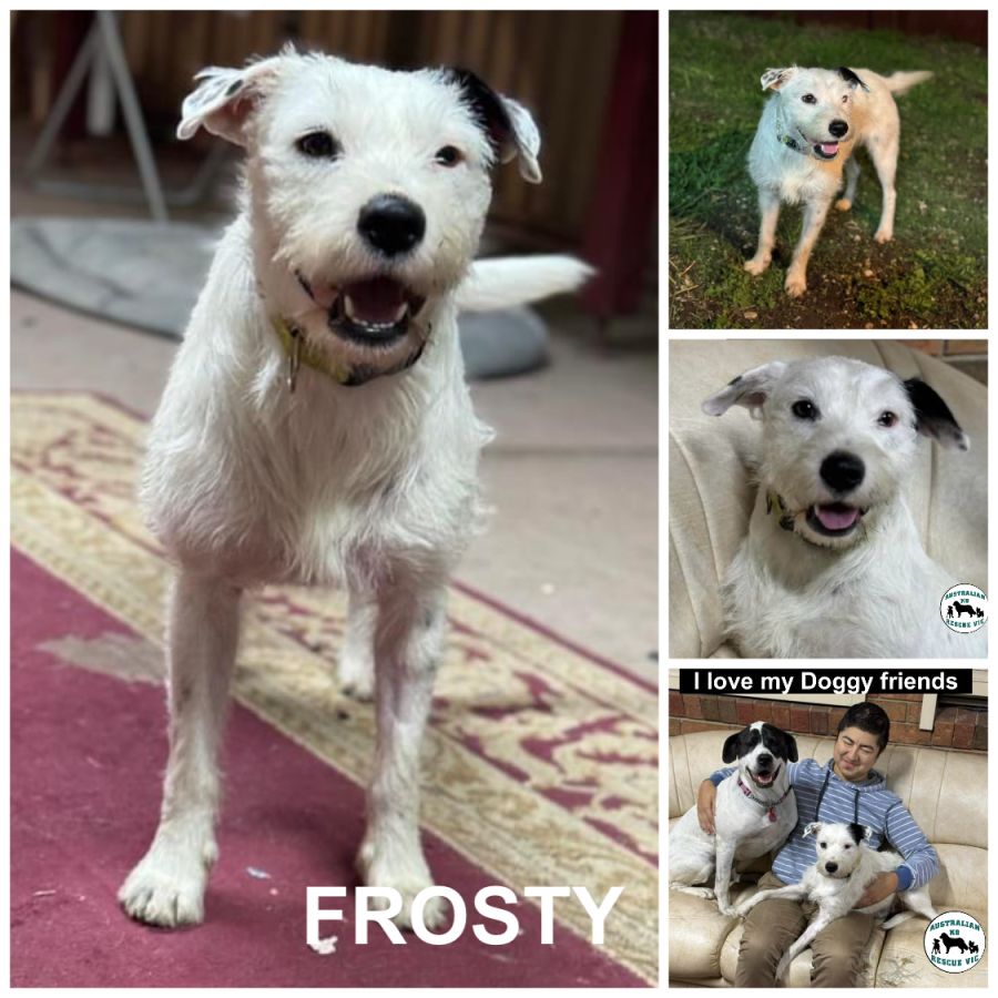 Frosty has learnt to sit and is doing well . He is very eager to learn. He has been great around the house and yard but as most younger dogs go they leave him unsupervised and occasionally some things can become a toy.. EG a bike helmet left out became a favourite lol