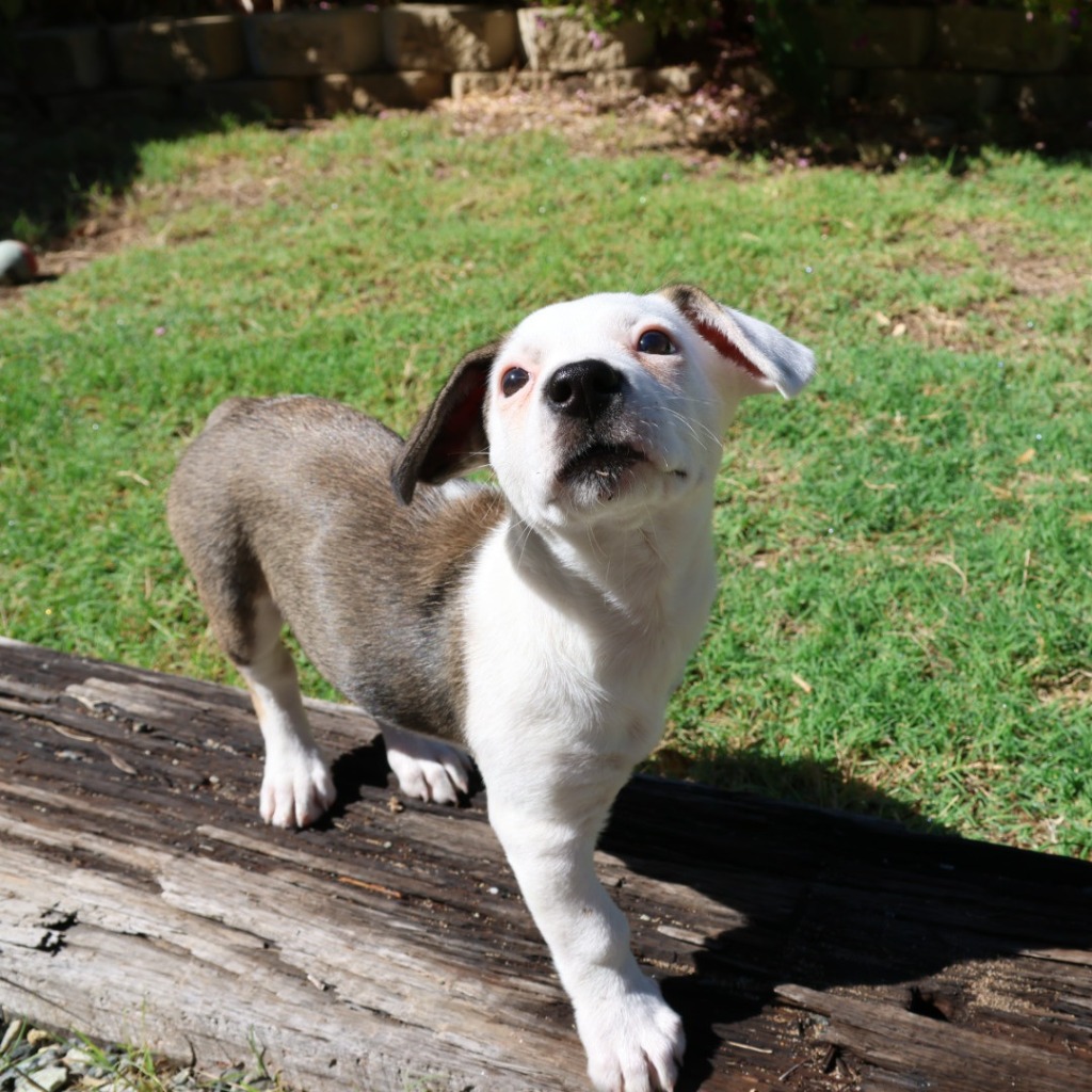 Harriet, fondly know as Hazza by her carers, is a sweet and loving pup. She loves other animals, her humans, food, and chew toys. She is an adventurer and follows “Uncle Buster” the resident boss dog everywhere, as he introduces her to different parts of the back yard. She likes spending the day in the garden and is fast loving a good zoomie! Harriet is very determined and clever. She mastered the doggy door very quickly although it took a bit longer to master stairs as she had to wait for her little legs to grow! Little Hazza loves her tummy rubs and plays the back leg banjo in the hopes her humans just won't stop. Being young Harriet needs love and patience as she learns. In return you will laugh, smile and be delighted by this little bundle of joy!