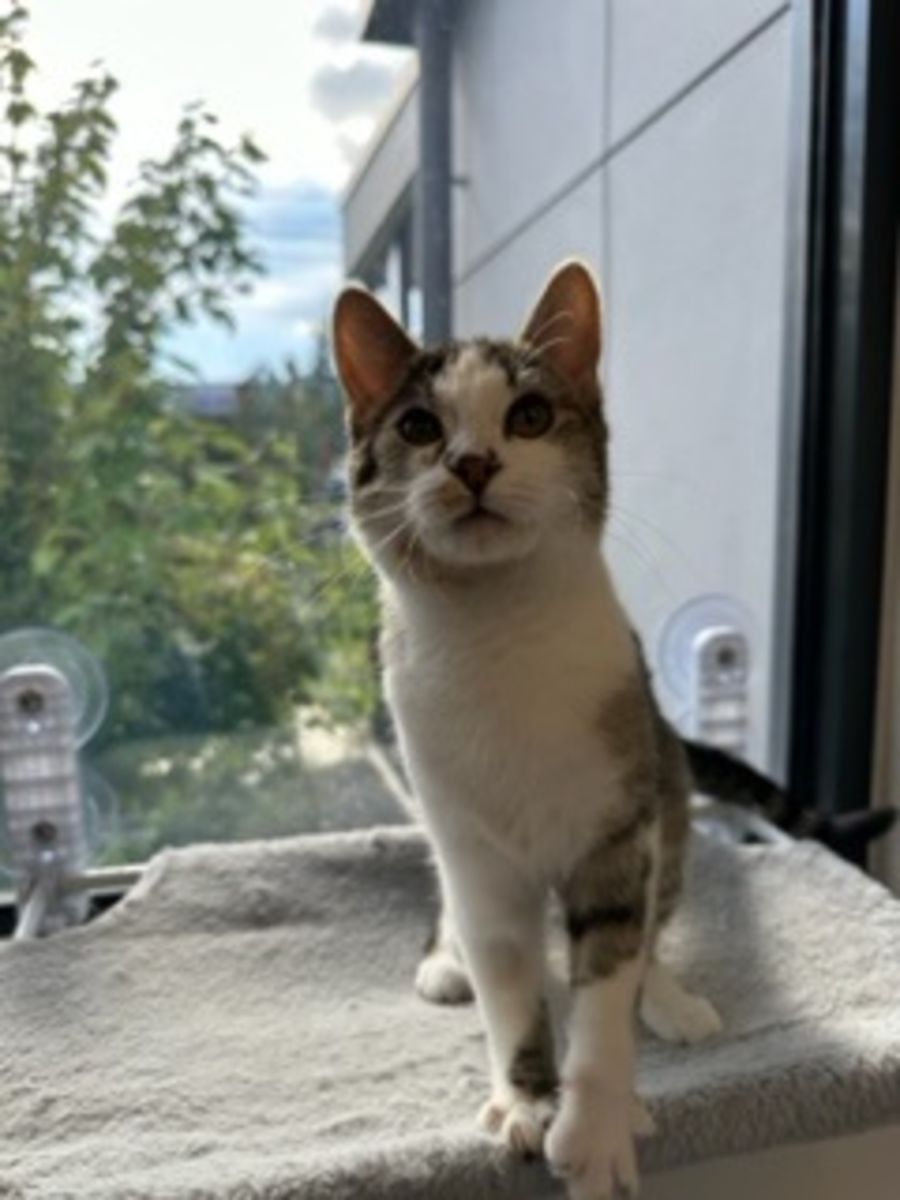 Boots is an absolutely adorable 5-month-old cat who is overflowing with love and friendliness. Despite his young age, Boots has already mastered the art of cuddling. He adores snuggling up on your lap or curling up beside you for a cozy nap. His affectionate nature makes him an ideal companion for both individuals and families looking for a furry friend to shower with love.