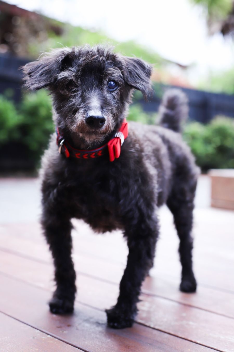 Let's introduce you to Midnight, an adorable 16-year-old toy poodle mix. The sprightliness of this gent might surprise you, given his years! He has a zest for life that exceeds his mature age. While he cherishes his indoor napping times, particularly on a comfy bed, Midnight's love for a backyard romp or a short neighborhood stroll cannot be understated.