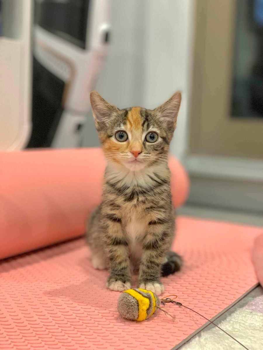 Poppy is an 8-week old kitten who like the company of other cats and humans.