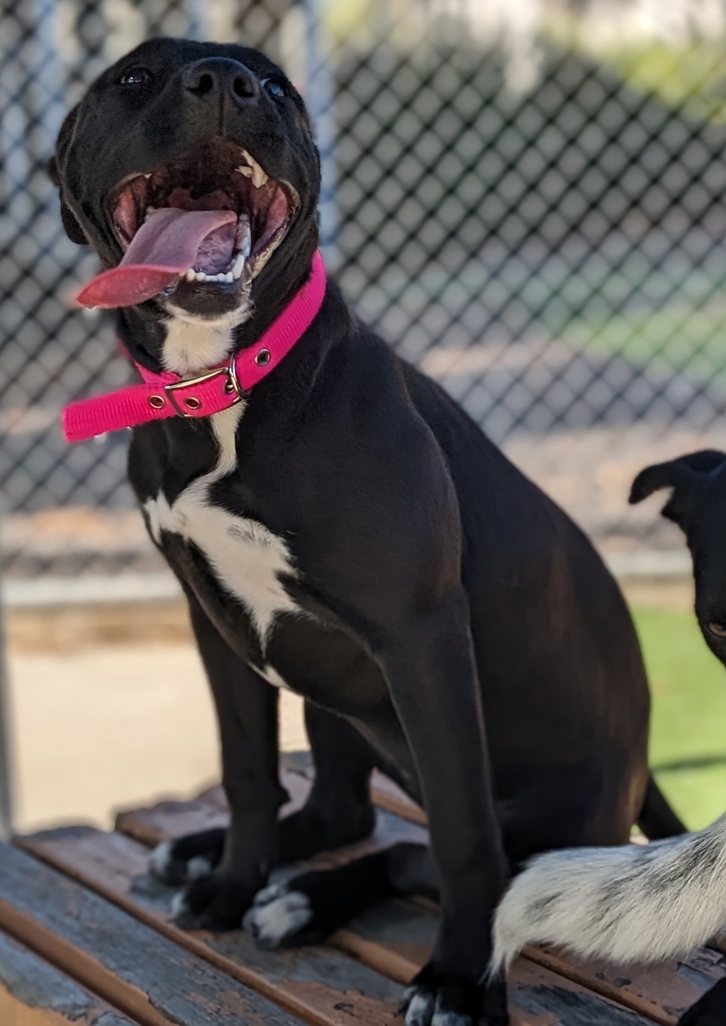 Hey there, pals! My name's China, and I'm here to tell you a little something about myself. Woof! I'm a young American Staffy cross bursting with joy and love for life. With the biggest smiles and the waggiest bum, I'm always ready to greet my friends, whether they walk on two legs or four.