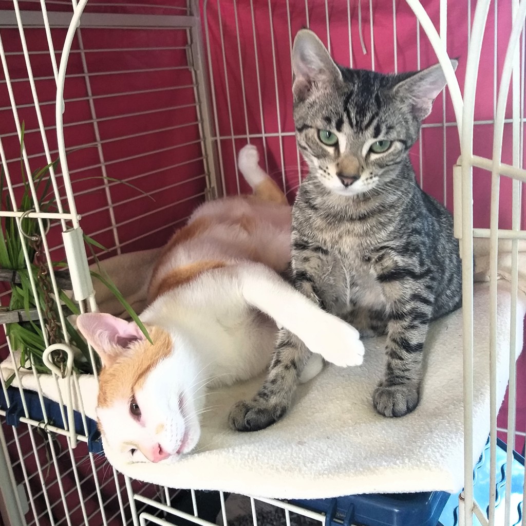 Check out this bonded pair of young cats, such striking eyes!! CHRISTOPHER ROBIN #741C (ginger and white) is a striking, friendly young fellow who starts purring the minute he sees you. He is outgoing, confident and affectionate. He is bonded to WINNIE #742C. Winnie came in as an unsocialised kitten and quickly bonded with Christopher Robin. She looks up to him for guidance and support as she grows in confidence. She is very sweet and loves cuddles but takes time to warm up to new people. Both kittens must be adopted together. Their rambunctious play and antics will keep you endlessly amused. They love interacting with other cats and are getting used to dogs. These two beauties are about four months old and are desexed, microchipped, vaccinated, worm/flea treated and vet checked.